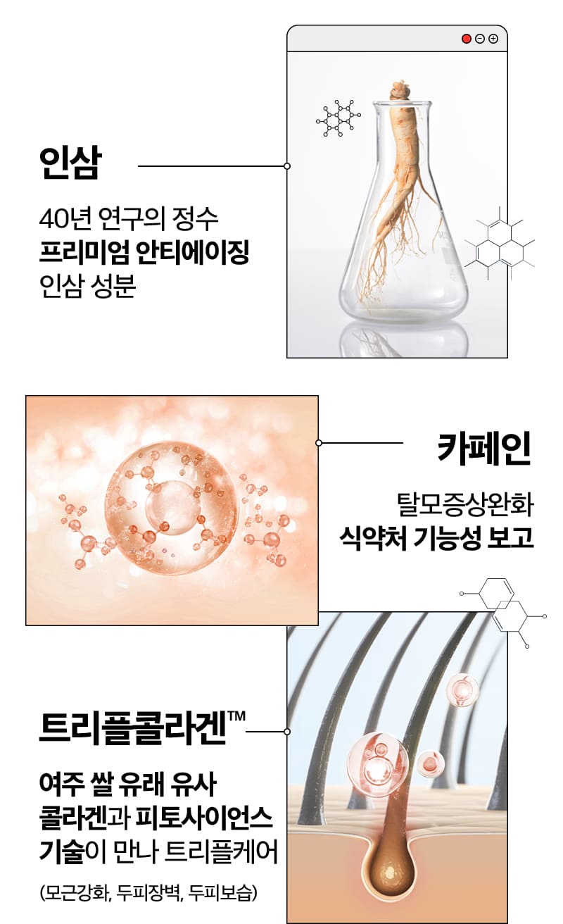 - 여주 쌀 유래 유사 콜라겐과 피토사이언스 기술이 만나 트리플케어 (모근강화, 두피장벽, 두피보습)