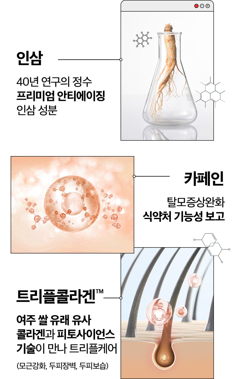 여주 쌀 유래 유사 콜라겐과 피토사이언스 기술이 만나 트리플케어 (모근강화, 두피장벽, 두피보습)