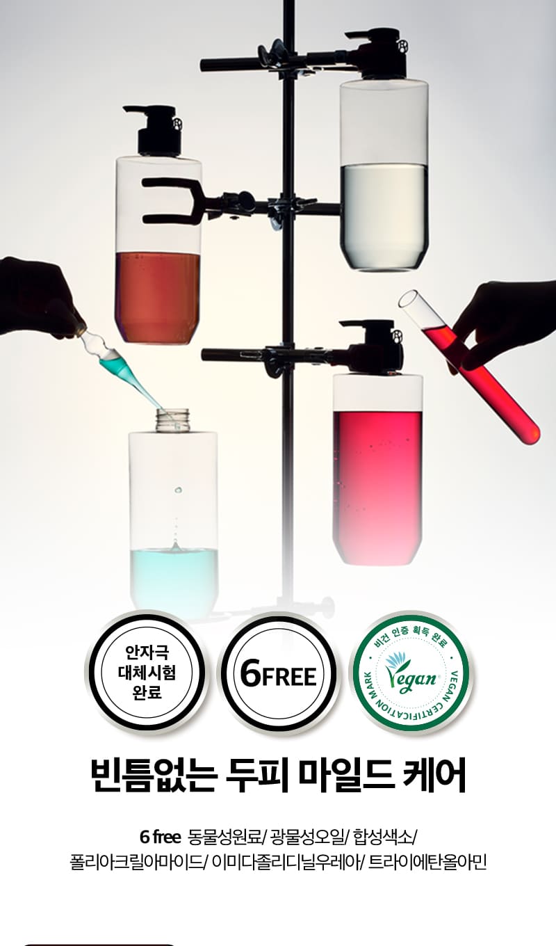 6 free 동물성원료/ 광물성오일/ 합성색소/ 폴리아크릴아마이드/ 이미다졸리디닐우레아/ 트라이에탄올아민